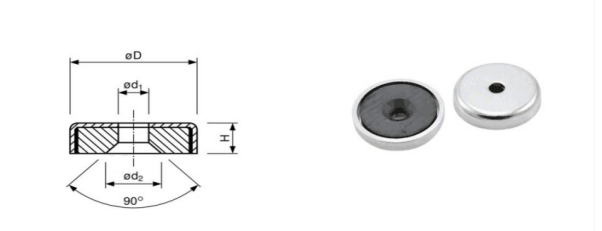 With the design of a countersunk mounting hole, ferrite countersunk pot magnets can be fixed with a taper threaded screw. And known as ferrite mountable magnets and screwed-on magnets.